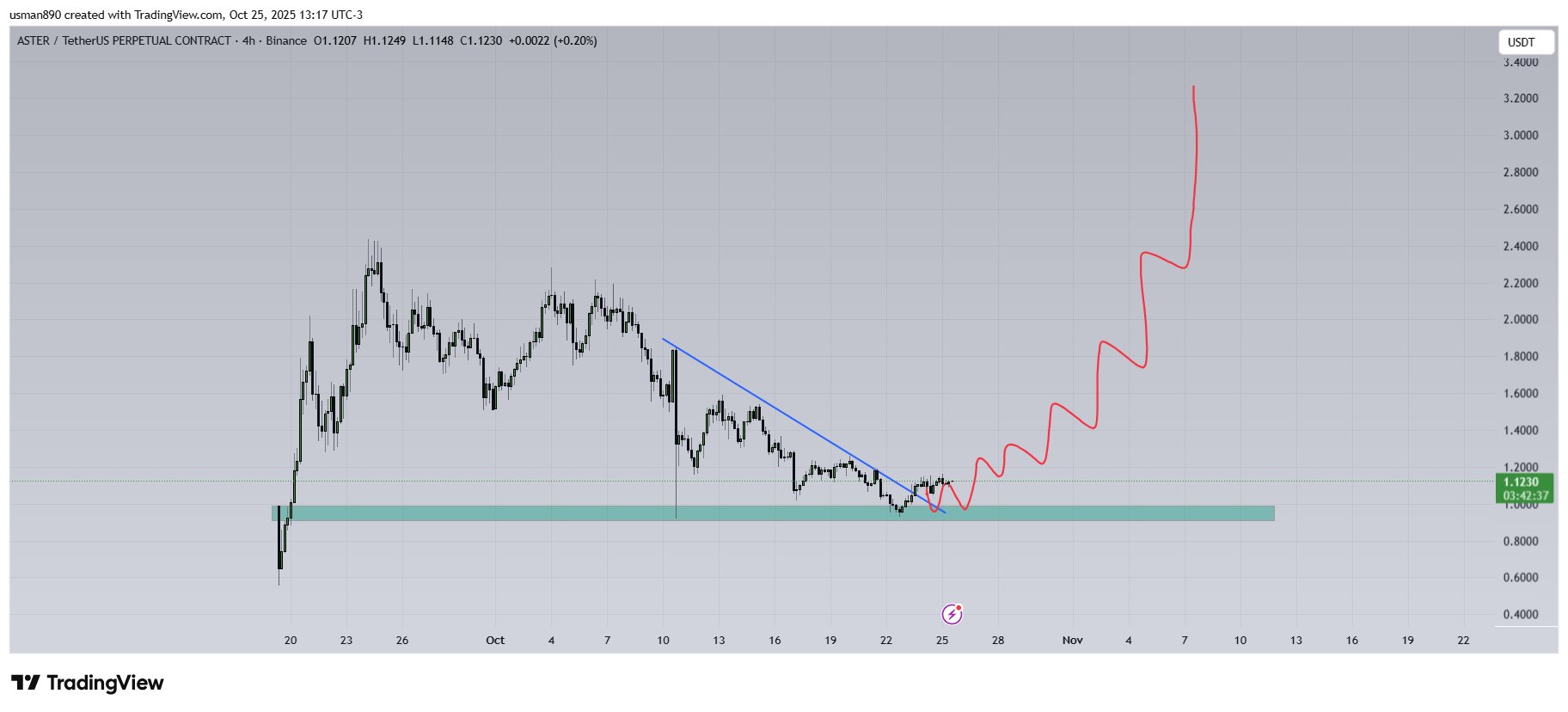 Moreover, fashionable analyst KNIGHT observes that ASTER has bounced off a key help space and damaged by means of a downtrend line. If this momentum will not be damaged, he believes ASTER has an opportunity to surpass the $3 stage and set a brand new ATH.