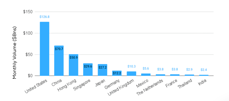 For cross-border funds, the USA acquired the most important stablecoin flows into the nation, with practically $127 billion month-to-month. China emerged because the second-largest nation for receiving stablecoin funds from worldwide senders, processing practically $71 billion per thirty days on common, adopted by Hong Kong with virtually $51 billion.