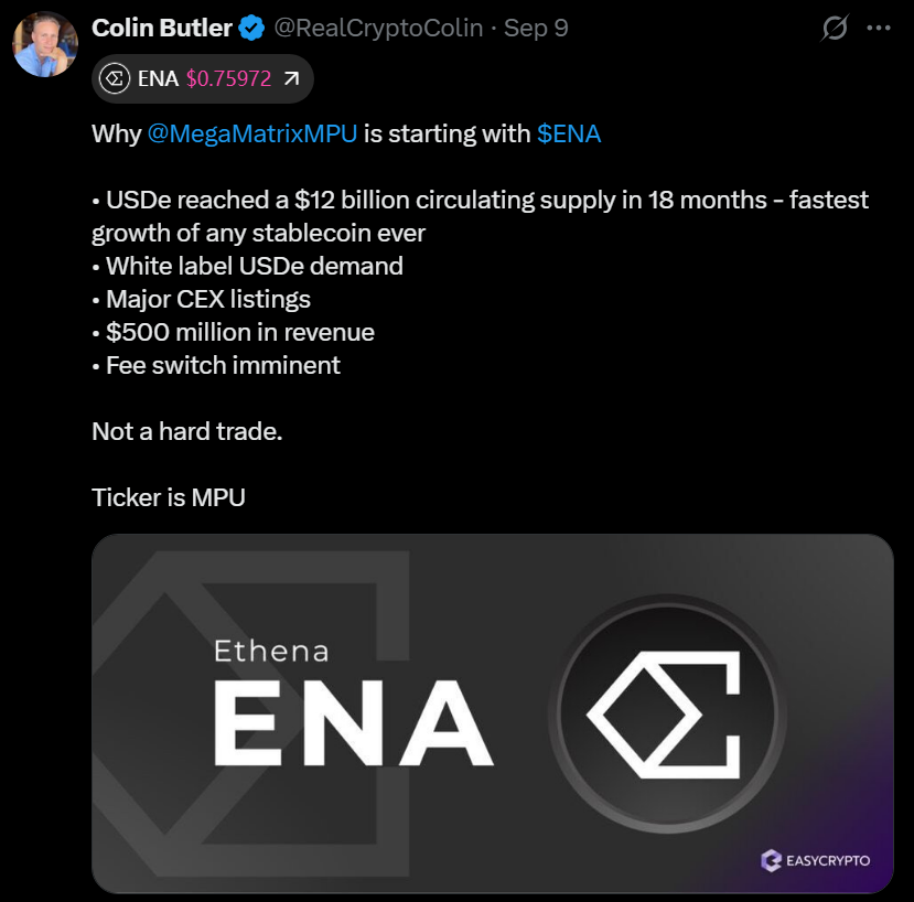 To offer traders entry, Mega Matrix has positioned its inventory as the primary publicly traded digital asset treasury devoted to the Ethena ecosystem, concentrating reserves in Ethena’s governance token, ENA.