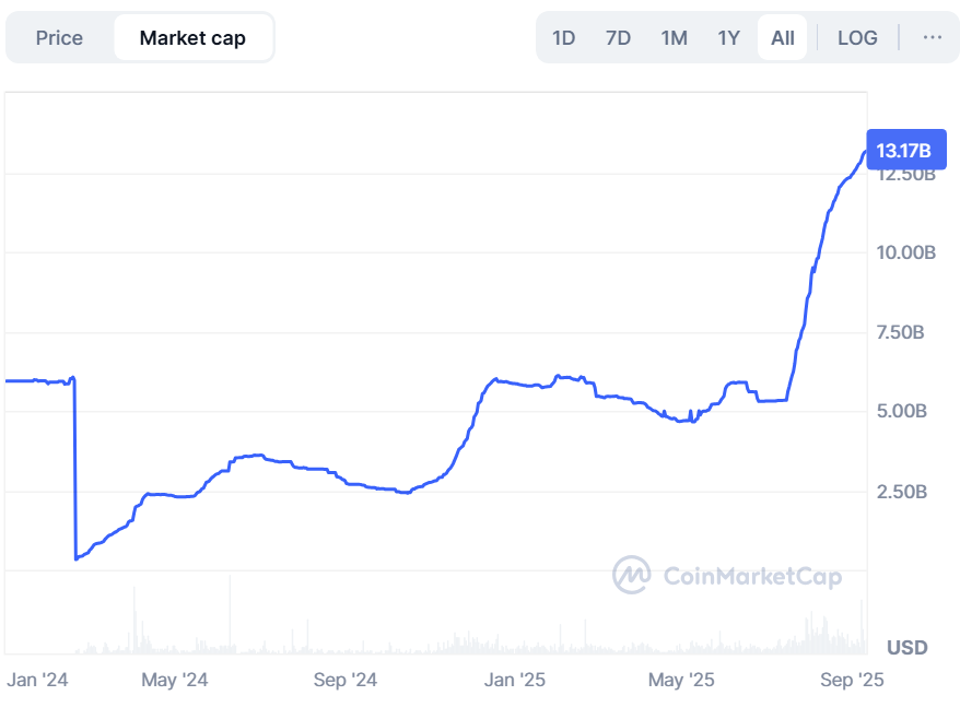 Market watchers observe that Ethena’s progress has already exceeded a number of the unique thresholds. Cumulative protocol revenues seem near qualifying ranges, and USDe’s market capitalization has surged previous $13 billion, making it the world’s third-largest stablecoin. Nonetheless, the protocol has but to specify when the mechanism will likely be applied.