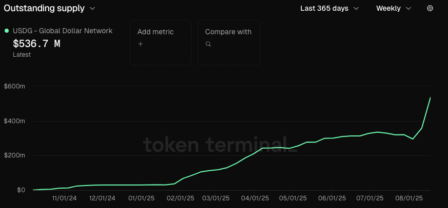 International Greenback (USDG), a U.S. dollar-backed stablecoin from Paxos, has almost doubled its market capitalization because the starting of the month to surpass $500 million.